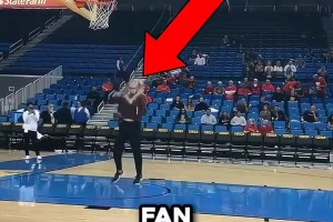 球迷投篮挑战,没想到遇到了专业的