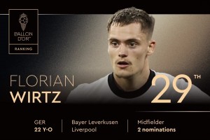 2025年金球奖排名第29位!弗洛里安-维尔茨,第二次获得提名 2025-09-23 15:30