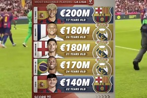 德转身价榜更新:亚马尔2亿欧世界第一,金球先生登贝莱仅9千万